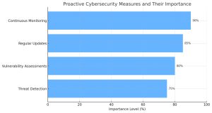 The chart below highlights continuous monitoring, regular updates, vulnerability assessments, and threat detection as crucial components of a robust cybersecurity strategy.